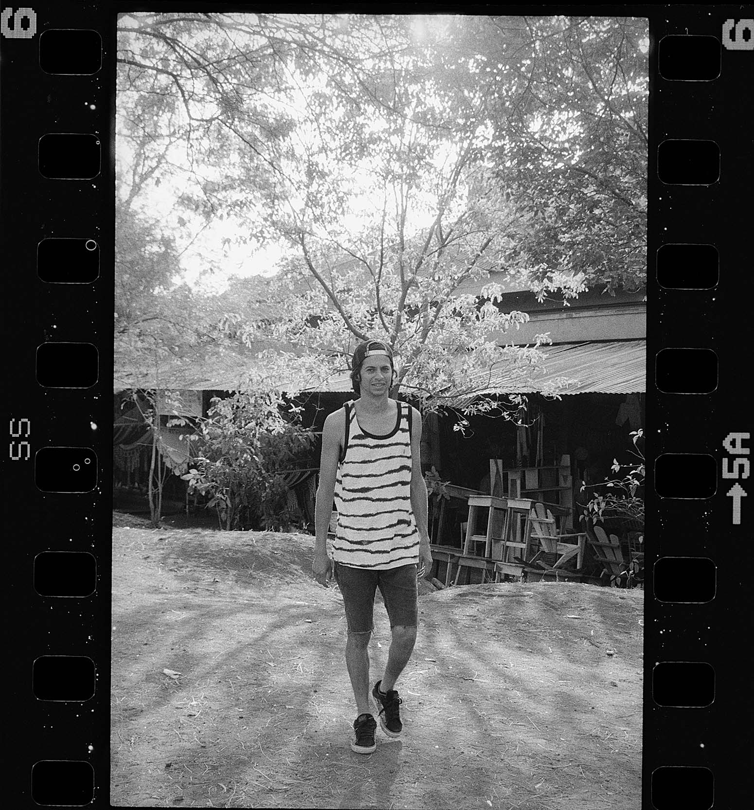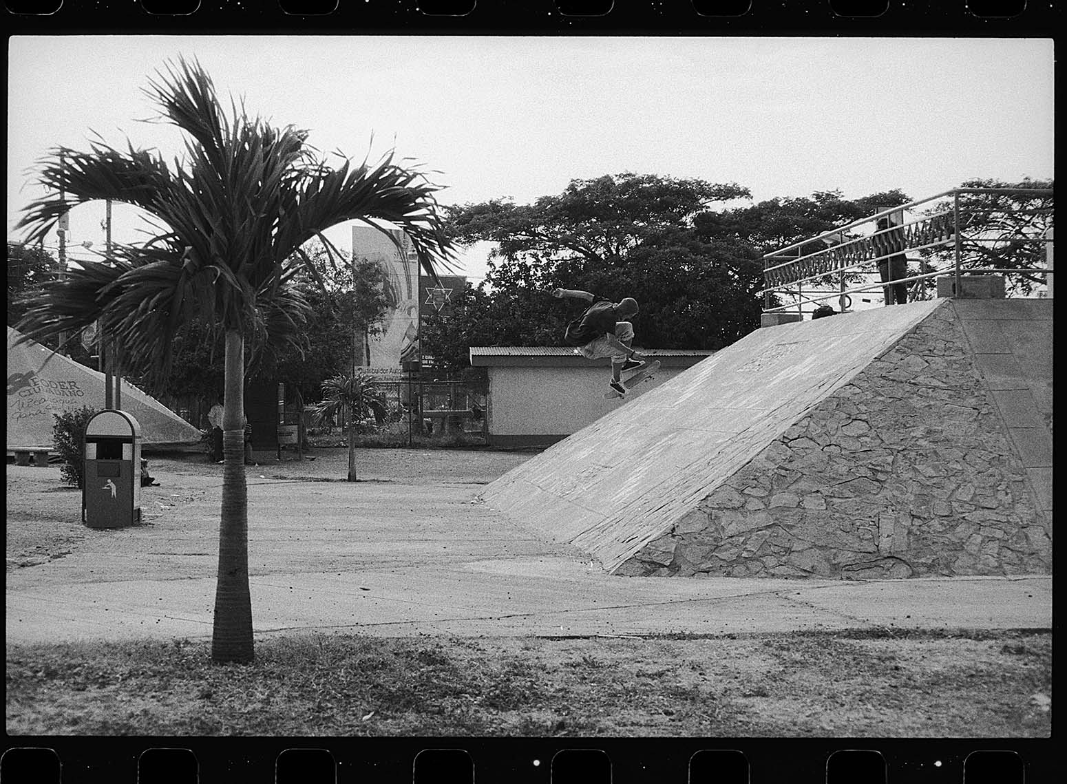 El viaje fue gracias a Element Skateboards. El plan era patinar calle, hacer un demo para un skate shop local que se llamaba Sands y un artículo para Blast. La revista impresa para la cual trabajaba yo en ese momento. En 2009 no tenía cámara digital, tampoco teníamos redes sociales como ahora. Todo lo que sacaba era en película y cargaba en mi mochila tres cámaras, lentes y flashes que hacían de mis viajes un calvario para mi espalda.