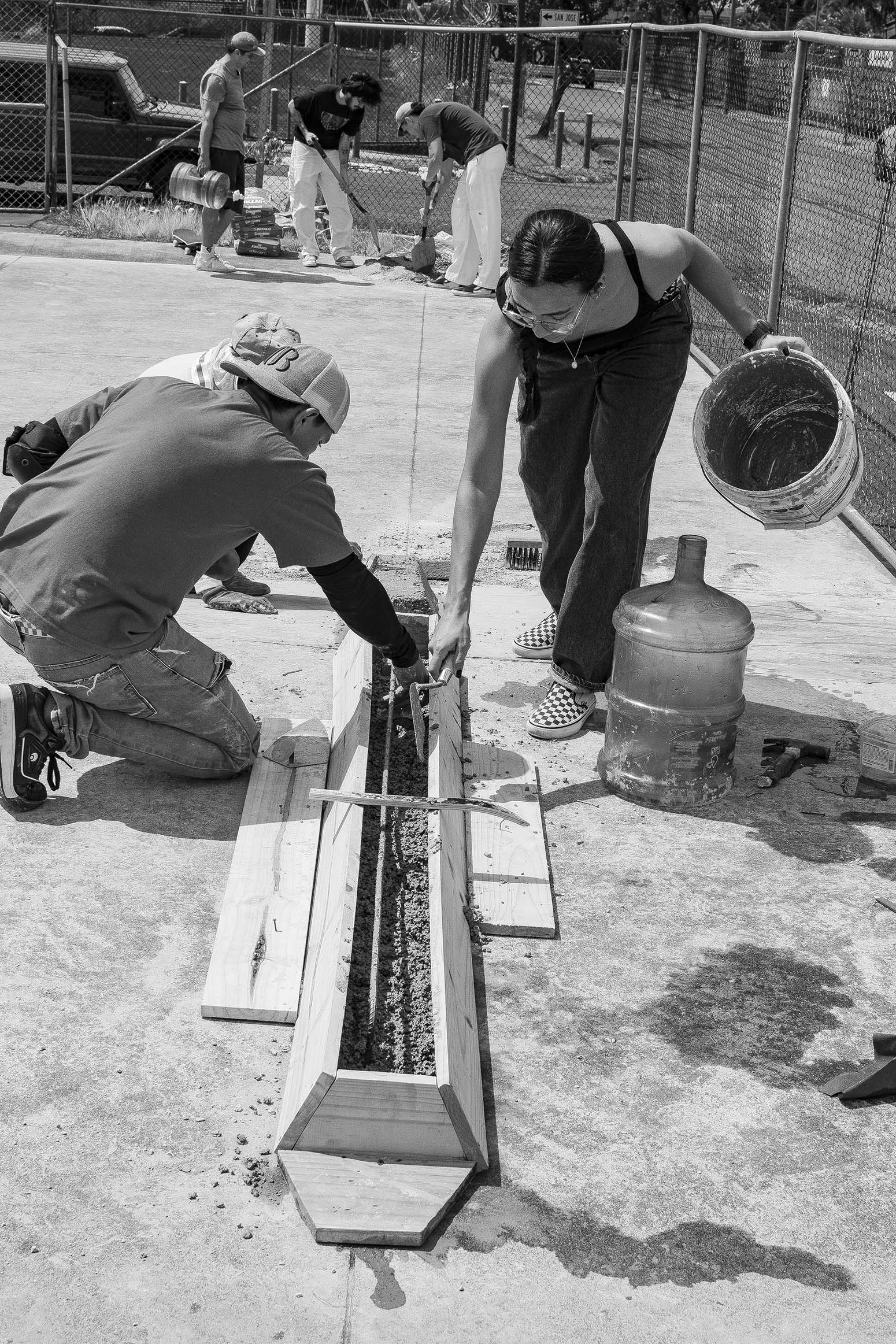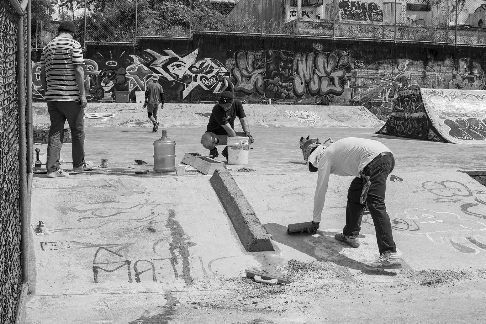 Contacté a John Vargas (Hecho en Destrucción), quien se encargó de los obstáculos de Tecma, y se sumó de inmediato. Él me conectó con Jorge Masís y Steven Artavia (D.ii.c – Diay Sí), quienes ya habían trabajado en el Parque de Pinos en Cartago. Estoy profundamente agradecido con los tres: han puesto tiempo, energía, ideas y herramientas para renovar el parque.